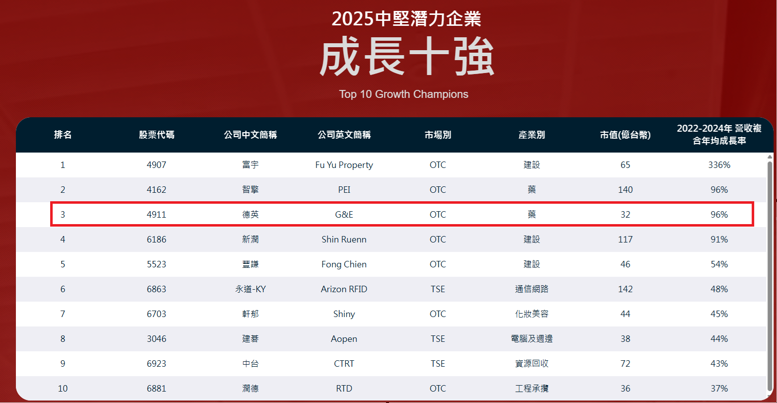 德英生技今天受邀出席 「2025 外資精選台灣100強頒獎典禮」